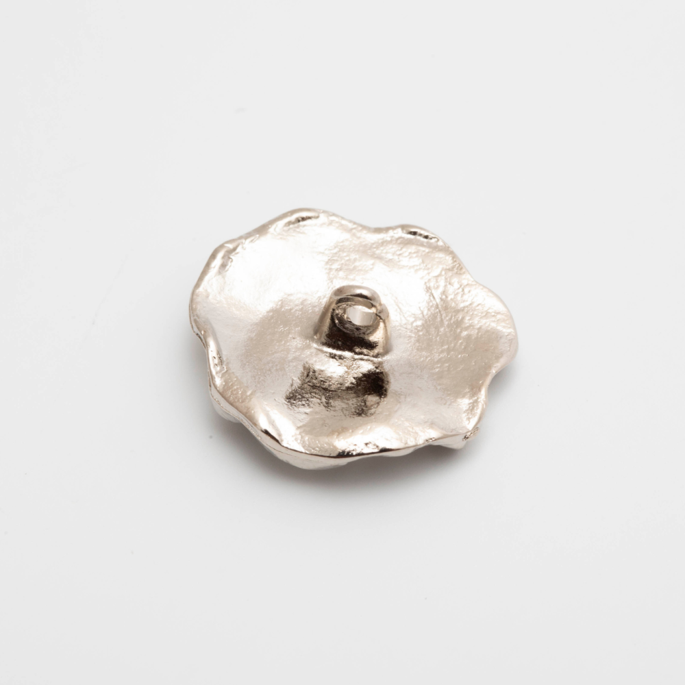 Botão metálico decorativo tamanho 0,18, com acabamento níquel brilhante. Uma peça que une requinte e tradição, ideal para enriquecer peças com um toque de luxo atemporal.