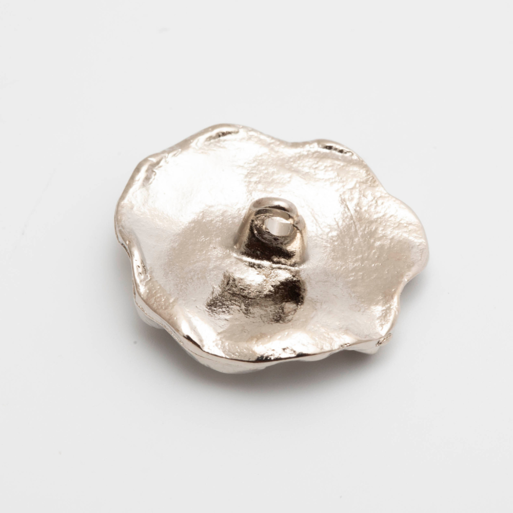 Botão metálico decorativo tamanho 0,34, com acabamento níquel brilhante. Uma peça que une requinte e tradição, ideal para enriquecer peças com um toque de luxo atemporal.