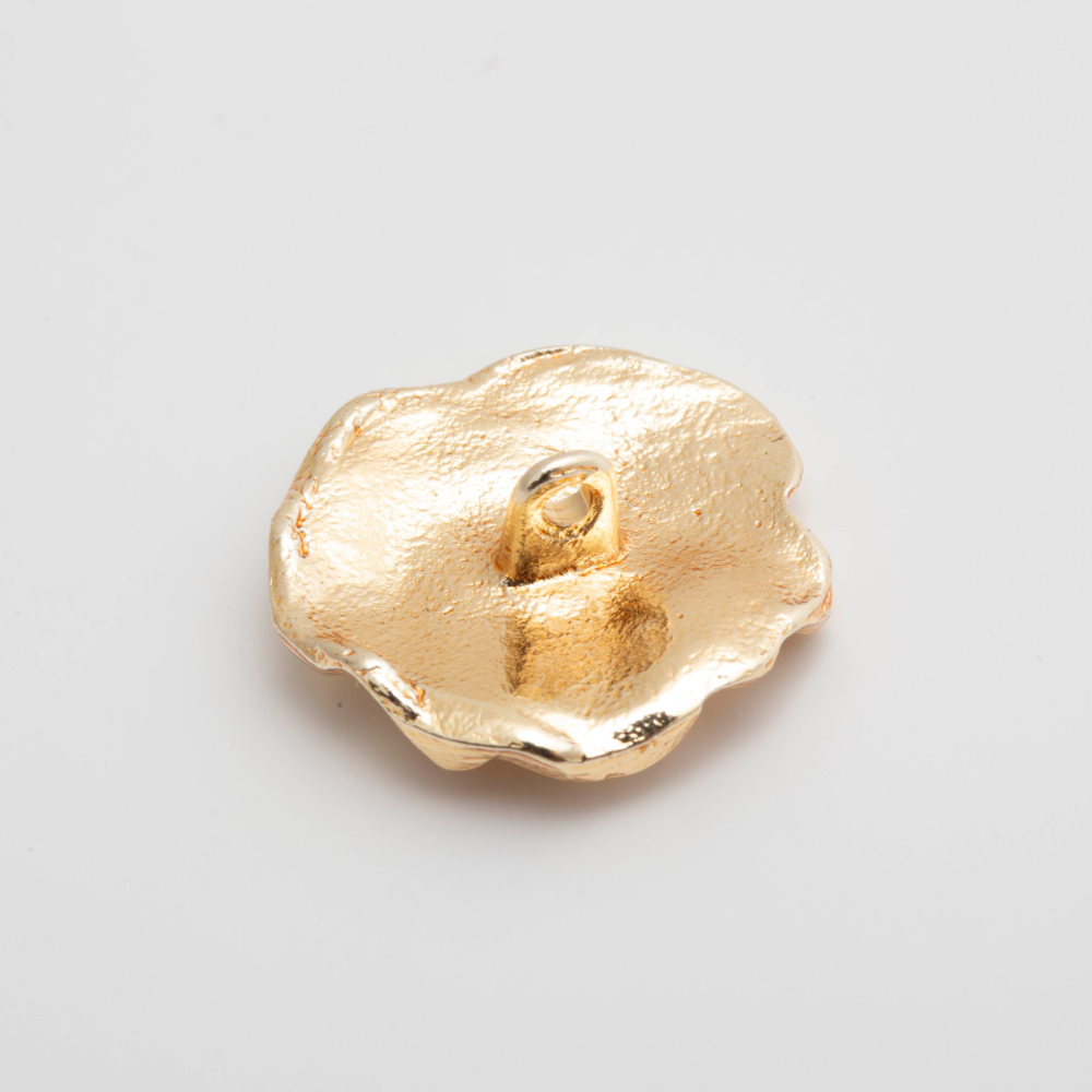 Botão metálico decorativo tamanho 0,18, com acabamento dourado brilhante. Uma peça que une requinte e tradição, ideal para enriquecer peças com um toque de luxo atemporal.