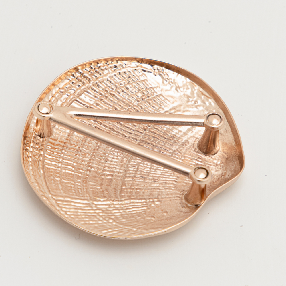 Passante em metal comumente utilizada em confecção de cintos, bolsas ou acessórios de vestuário e calçados. O design combina funcionalidade com estética moderna, especialmente no acabamento dourado.