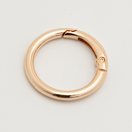 Argola comumente utilizada em confecção de cintos, bolsas ou acessórios de vestuário e calçados. O design combina funcionalidade com estética moderna, especialmente no acabamento dourado.