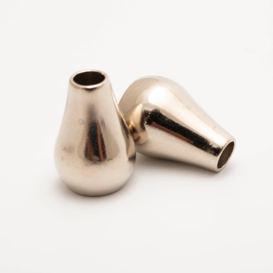 ponteira de cone em metal com banho níquel é um aviamento elegante e funcional, usado para dar acabamento sofisticado a peças de moda e acessórios. ????
