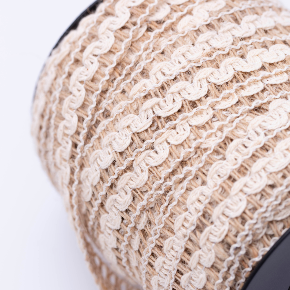 Marrom claro: Cor de fundo entrelaçado, com textura rústica da juta.
