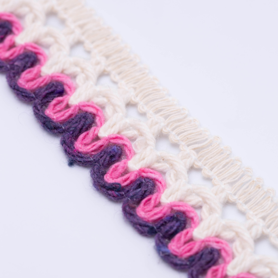 Rosa Vivo: Parte da borda inferior, alternando com o roxo em padrão ondulado.