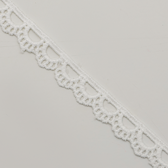 A Renda Guipir tem 1,20 cm, é um tipo de renda elegante e encorpada, amplamente usada em acabamentos e detalhes que valorizam o visual de peças de moda e decoração.