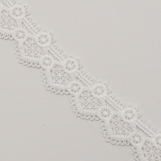 A Renda Guipir tem 1,90 cm, é um tipo de renda elegante e encorpada, amplamente usada em acabamentos e detalhes que valorizam o visual de peças de moda e decoração.