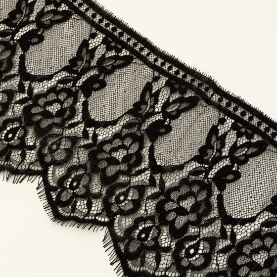 A Renda Chantilly tem 19,50 cm, é um tipo de renda elegante e encorpada, amplamente usada em acabamentos e detalhes que valorizam o visual de peças de moda e decoração.