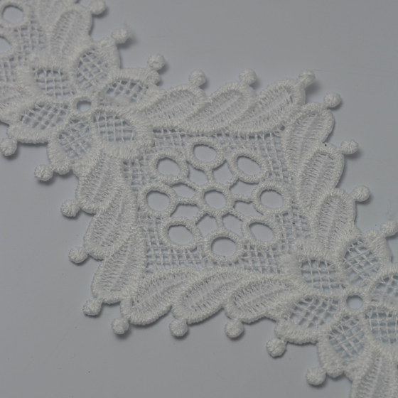Renda Guipir tamanho 8,00 cm é um tipo de renda elegante e encorpada, amplamente usada em acabamentos e detalhes que valorizam o visual de peças de moda e decoração.