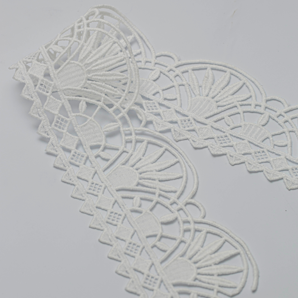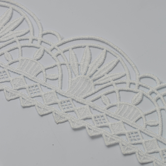 Renda Guipir tamanho 8,00 cm é um tipo de renda elegante e encorpada, amplamente usada em acabamentos e detalhes que valorizam o visual de peças de moda e decoração.