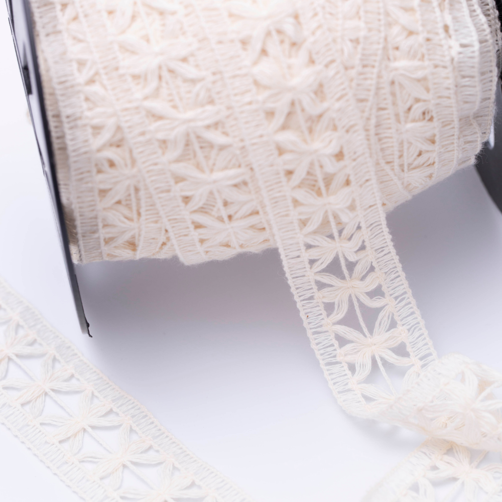 A renda de algodão de cor natural tamanho 2,80 cm é um aviamento fino e elegante, reconhecido por seu desenho delicado, transparência leve e caimento sofisticado. Inspirada nas rendas francesas tradicionais, ela é perfeita para aplicações que exigem toque de romantismo e sofisticação.