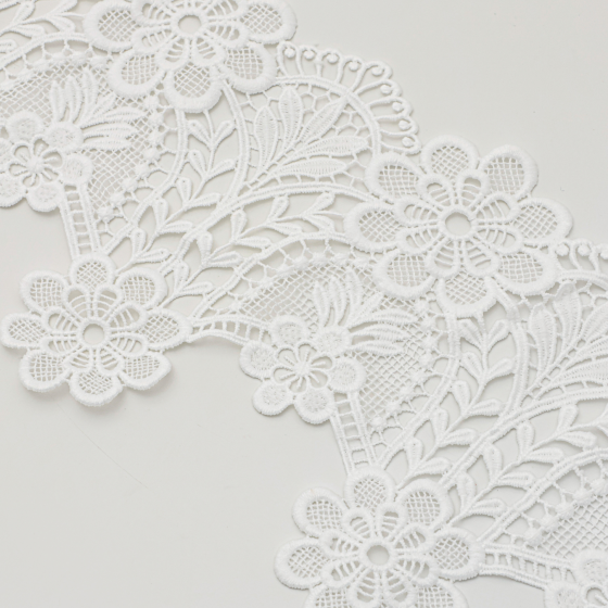 A Renda Guipir tem 15,50 cm, é um tipo de renda elegante e encorpada, amplamente usada em acabamentos e detalhes que valorizam o visual de peças de moda e decoração.