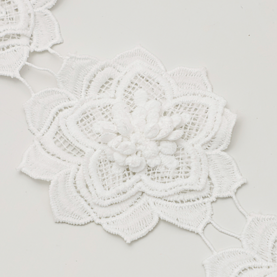 A Renda Guipir tem 9,00 cm, é um tipo de renda elegante e encorpada, amplamente usada em acabamentos e detalhes que valorizam o visual de peças de moda e decoração.