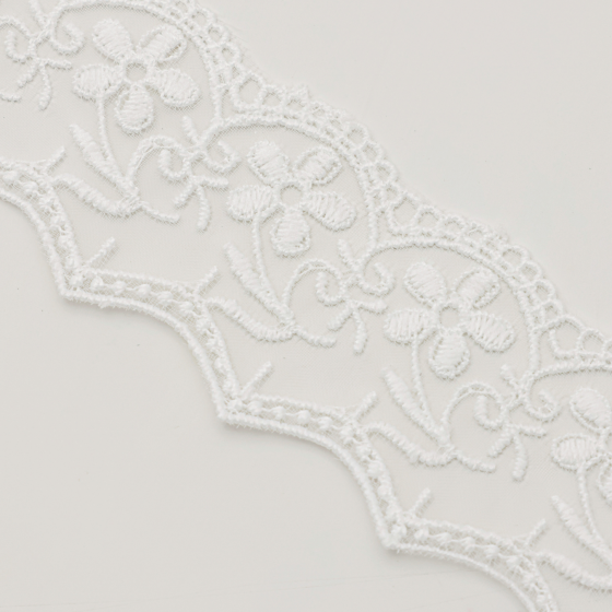 A Renda tule fosco tem 4,10 cm é um tipo de renda elegante e encorpada, amplamente usada em acabamentos e detalhes que valorizam o visual de peças de moda e decoração.
