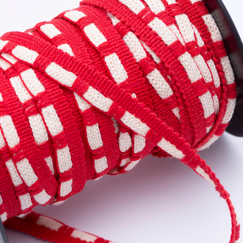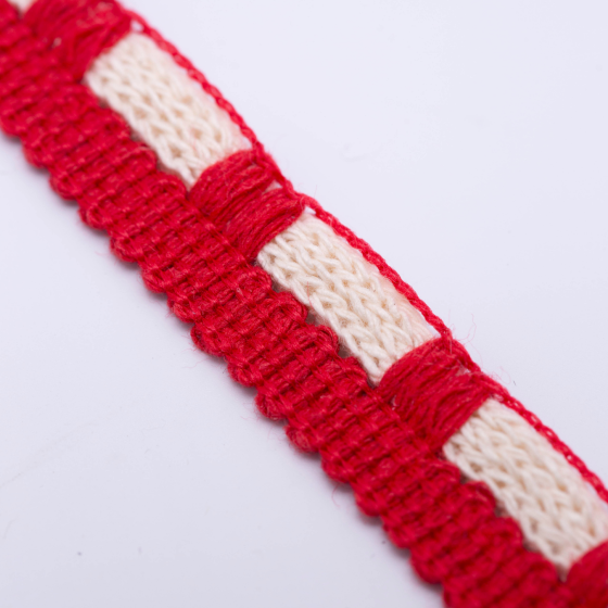 Cru: Cor da faixa central trançada, criando contraste com o vermelho.
