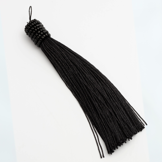 Cor preta e o material do tassel transmitem uma sensação de sofisticação, elegância e mistério.