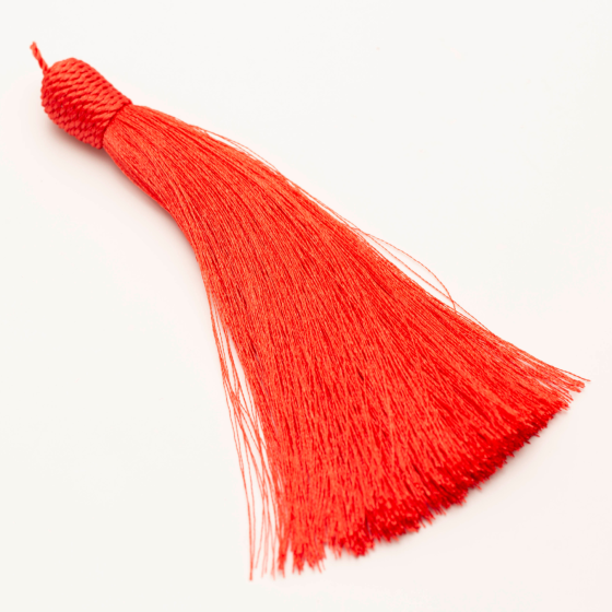 Cor vermelho e o material do tassel transmitem uma sensação de sofisticação, elegância e amor.