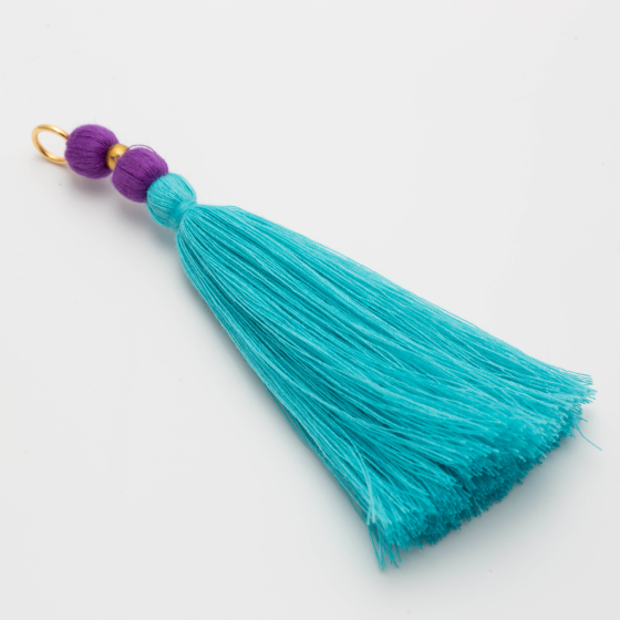 Pacote com 10 tassels de fios — um enfeite comumente usado em moda, acessórios, decoração e artesanato. Este modelo possui duas camadas de cores.